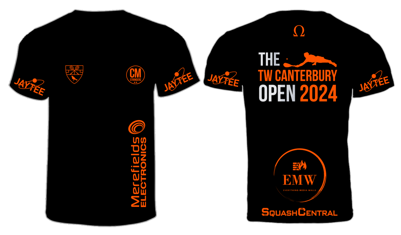 Show your support for The TW Canterbury Open 2024 with this Jet Black, Orange & Silver Design