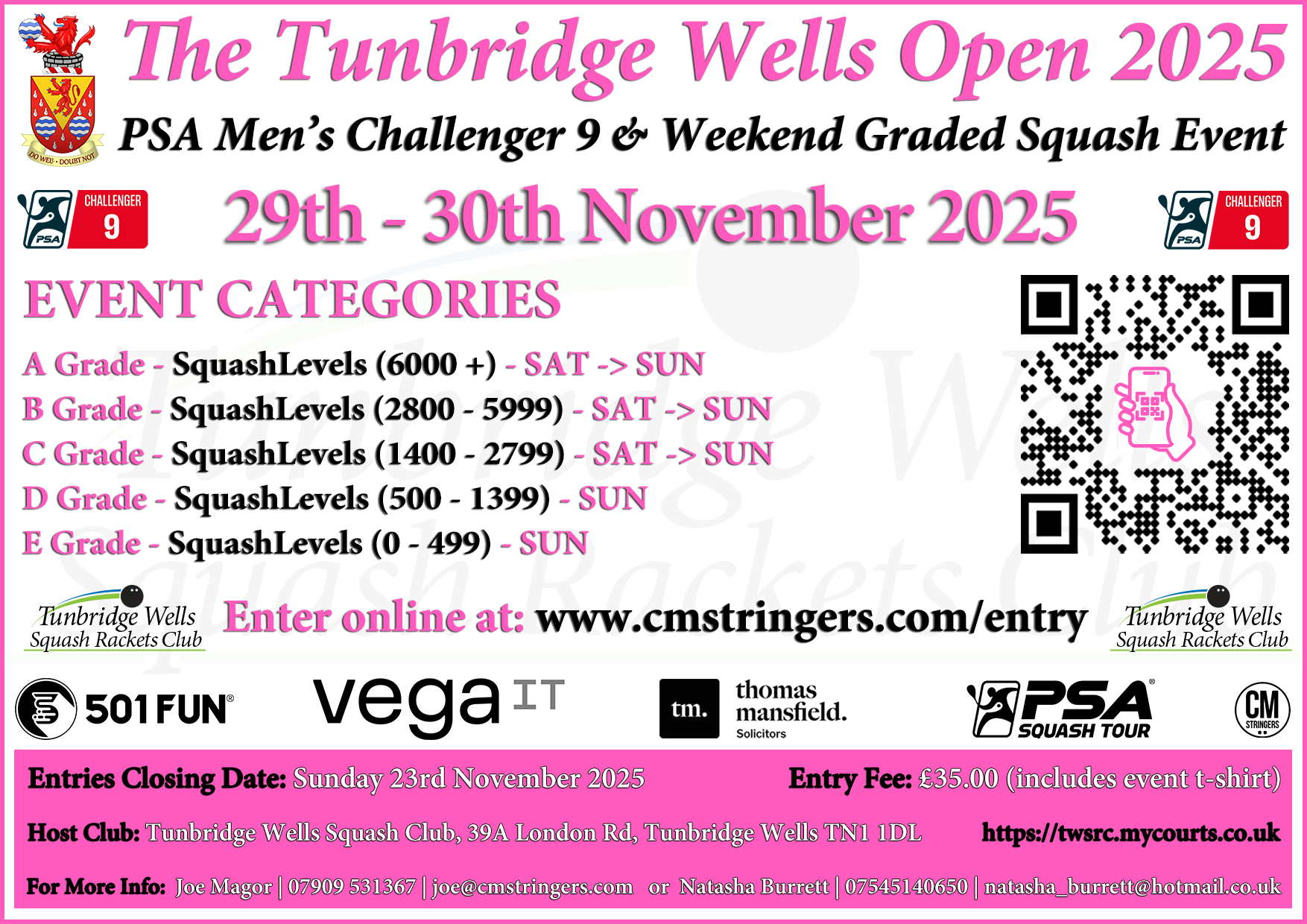 • Entry Fee includes The Tunbridge Wells Open tournament t-shirt.